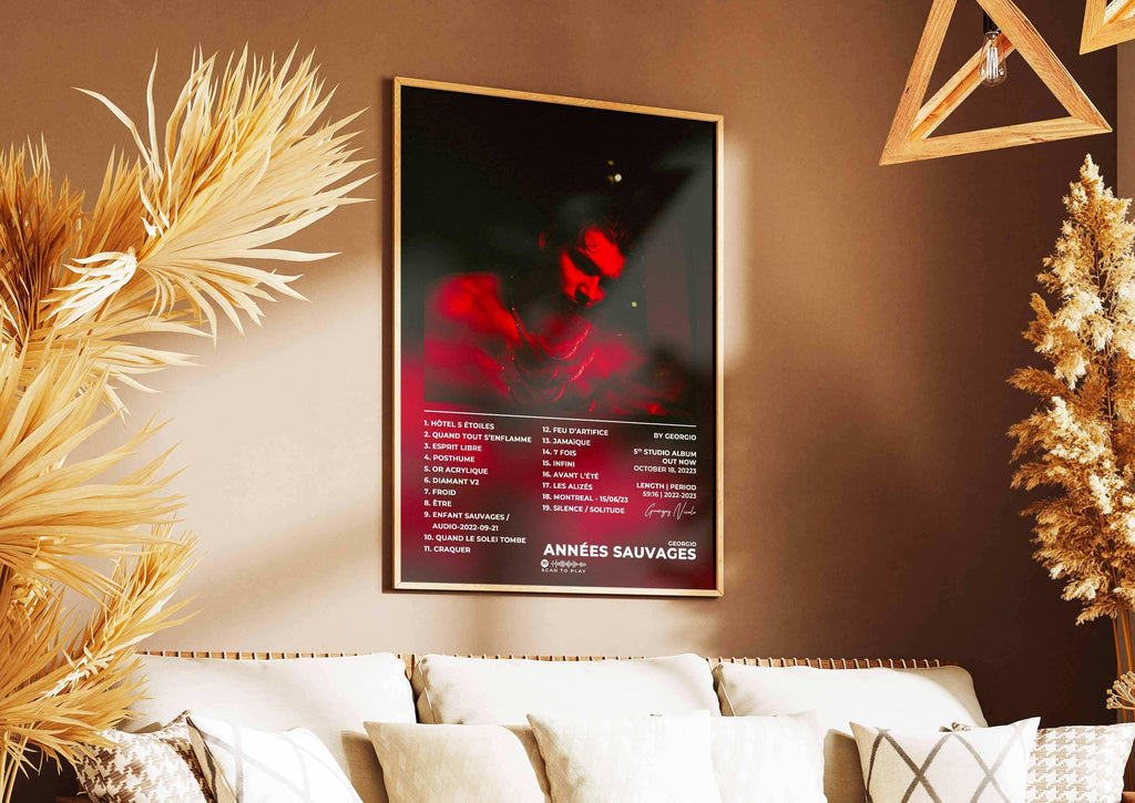 Scanne simplement le code sur le poster avec ton app de streaming pour que la musique prenne vie dans ton espace intérieur. Chaque poster devient une œuvre d'art et une passerelle vers tes albums préférés.