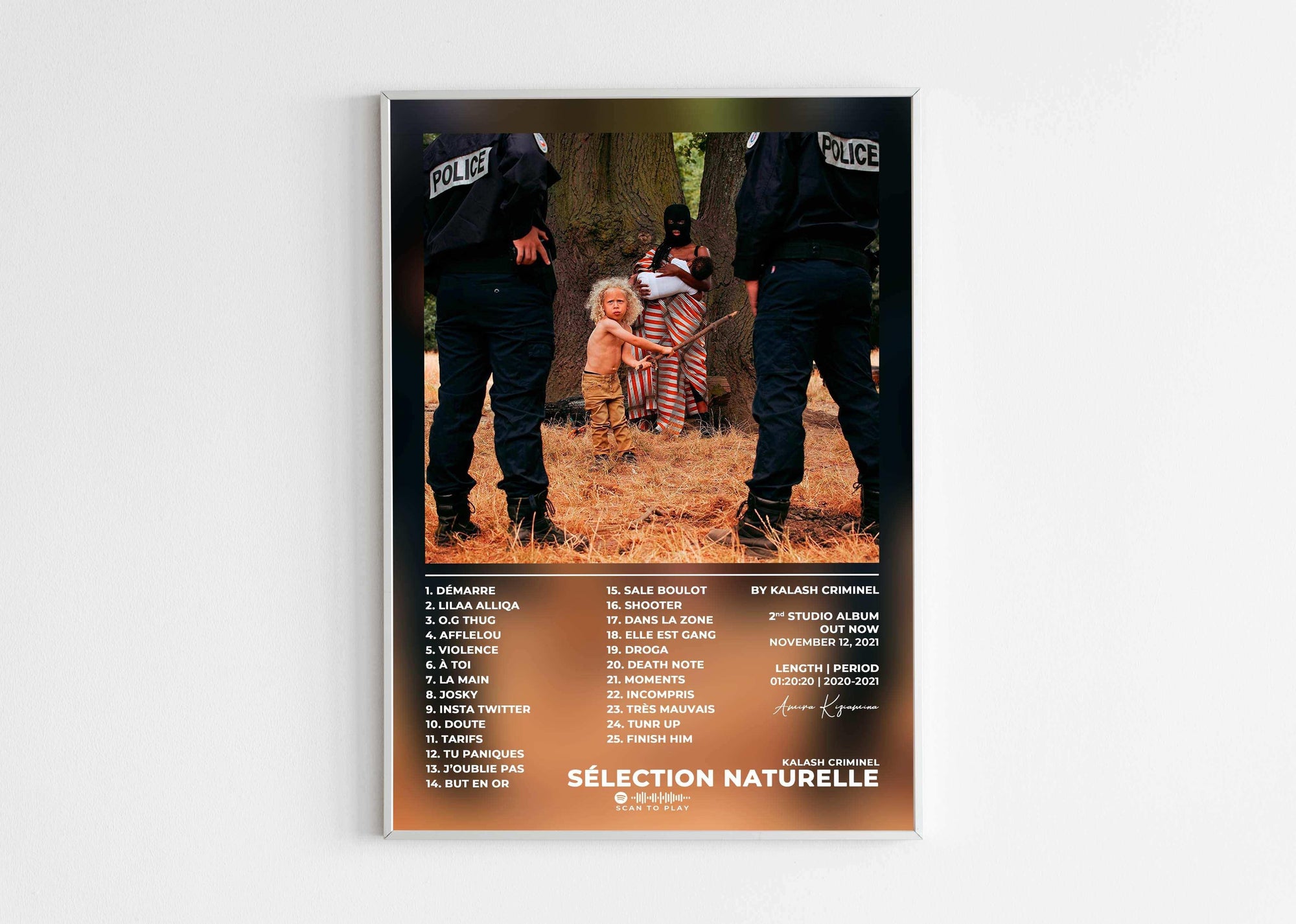 Scanne simplement le code sur le poster avec ton app de streaming pour que la musique prenne vie dans ton espace intérieur. Chaque poster devient une œuvre d'art et une passerelle vers tes albums préférés.
