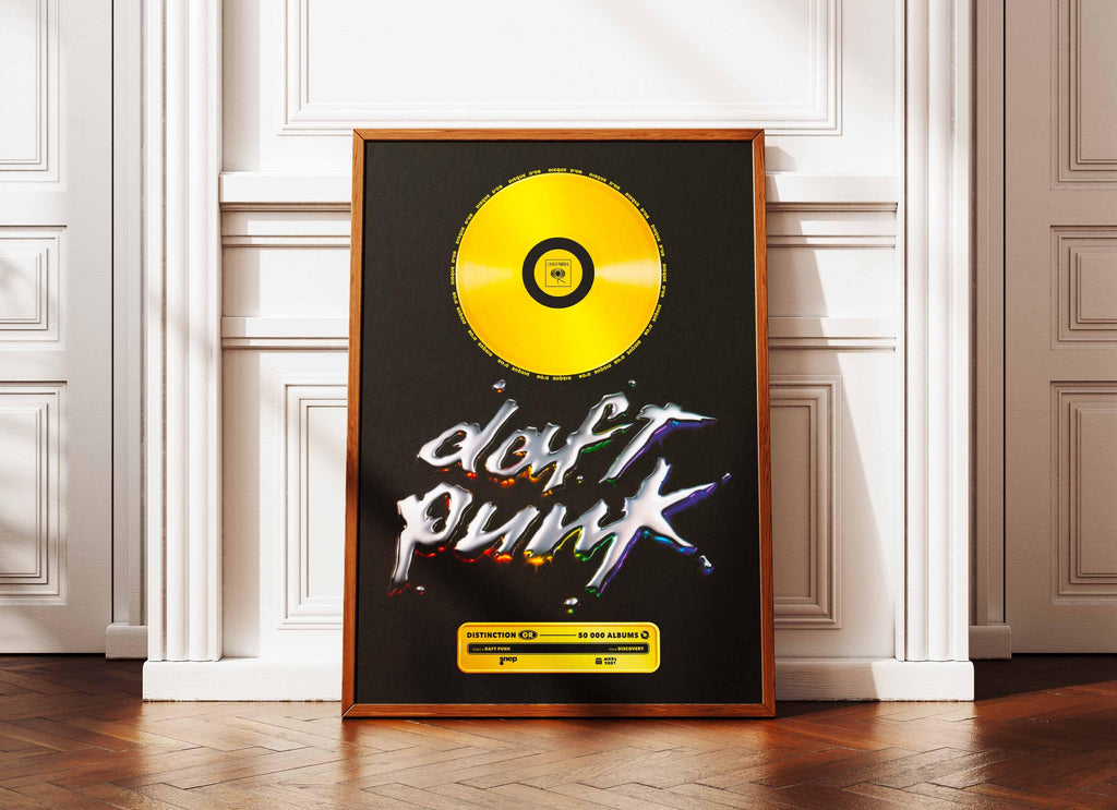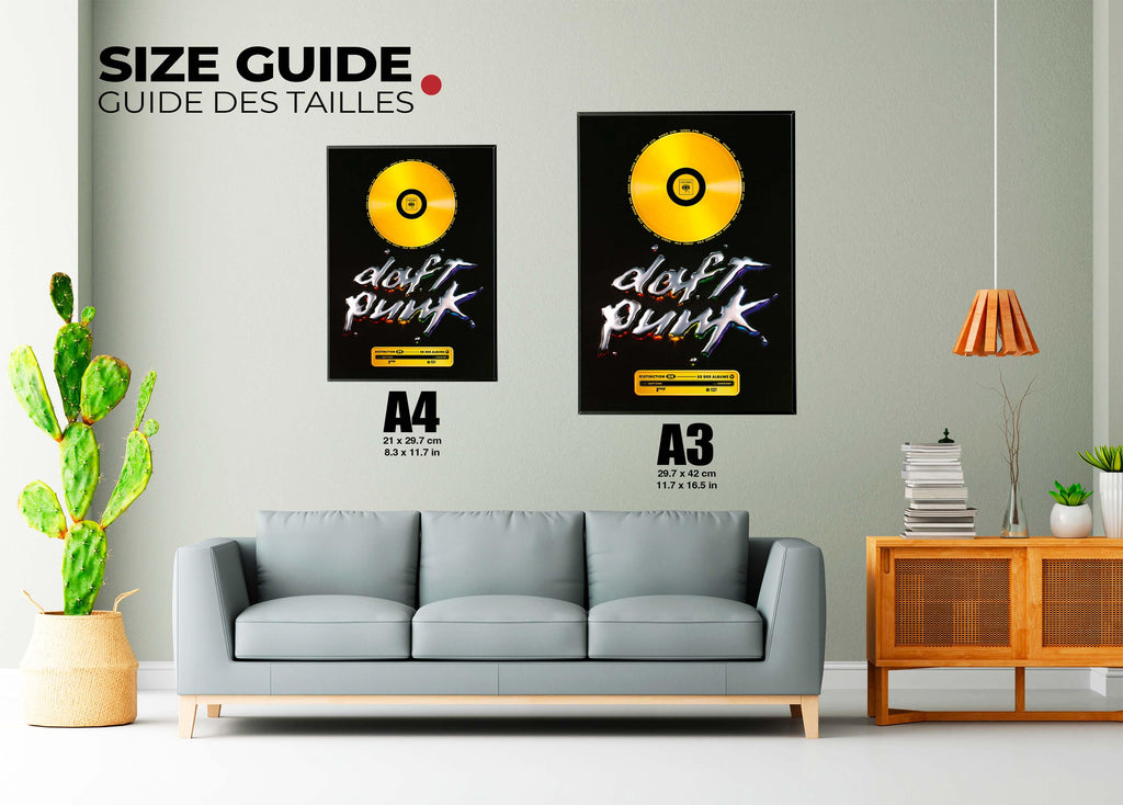 Les disques d'or sont envoyés dans des cartons rigides recyclés rectangulaires, adaptés à la taille commandée, pour garantir leur protection. Les posters au format A5 et A4 seront expédiés dans une épaisse enveloppe matelassée, tandis que les formats A3 et A2 seront soigneusement roulés et envoyés dans des tubes de livraison rigides et écologiques. Ces solutions d'emballage assurent une réception en parfait état de votre commande.