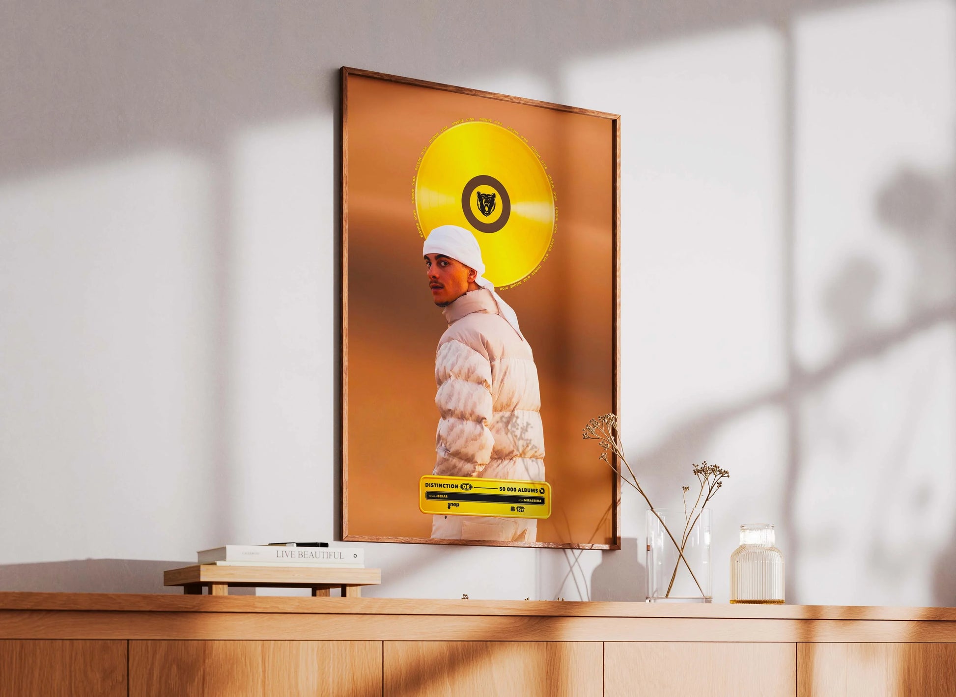Scanne simplement le code sur le poster avec ton app de streaming pour que la musique prenne vie dans ton espace intérieur. Chaque poster devient une œuvre d'art et une passerelle vers tes albums préférés.