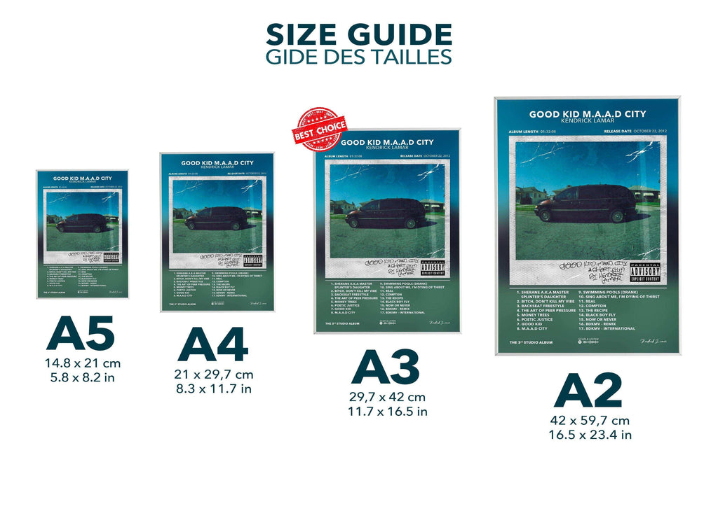 Les disques d'or sont envoyés dans des cartons rigides recyclés rectangulaires, adaptés à la taille commandée, pour garantir leur protection. Les posters au format A5 et A4 seront expédiés dans une épaisse enveloppe matelassée, tandis que les formats A3 et A2 seront soigneusement roulés et envoyés dans des tubes de livraison rigides et écologiques. Ces solutions d'emballage assurent une réception en parfait état de votre commande.