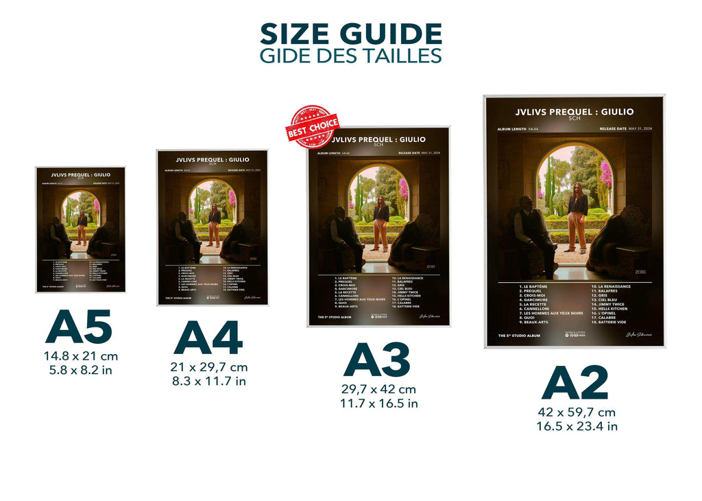 Les disques d'or sont envoyés dans des cartons rigides recyclés rectangulaires, adaptés à la taille commandée, pour garantir leur protection. Les posters au format A5 et A4 seront expédiés dans une épaisse enveloppe matelassée, tandis que les formats A3 et A2 seront soigneusement roulés et envoyés dans des tubes de livraison rigides et écologiques. Ces solutions d'emballage assurent une réception en parfait état de votre commande.
