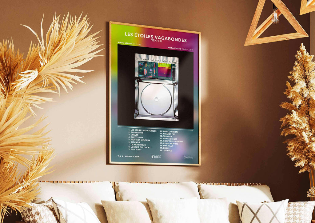 Scanne simplement le code sur le poster avec ton app de streaming pour que la musique prenne vie dans ton espace intérieur. Chaque poster devient une œuvre d'art et une passerelle vers tes albums préférés.