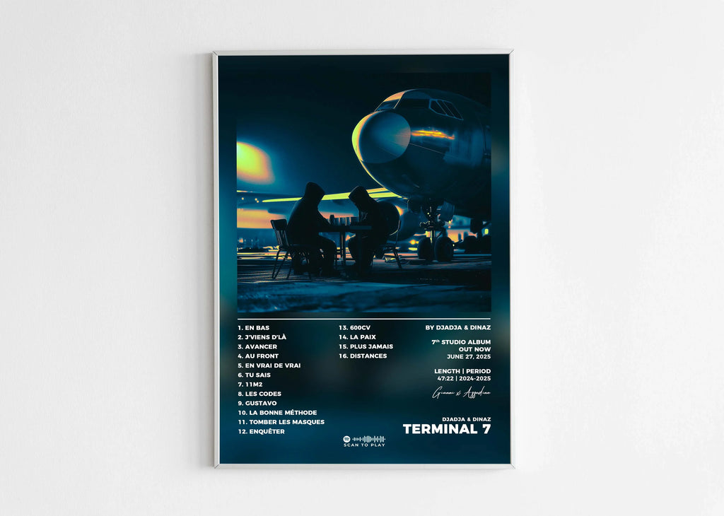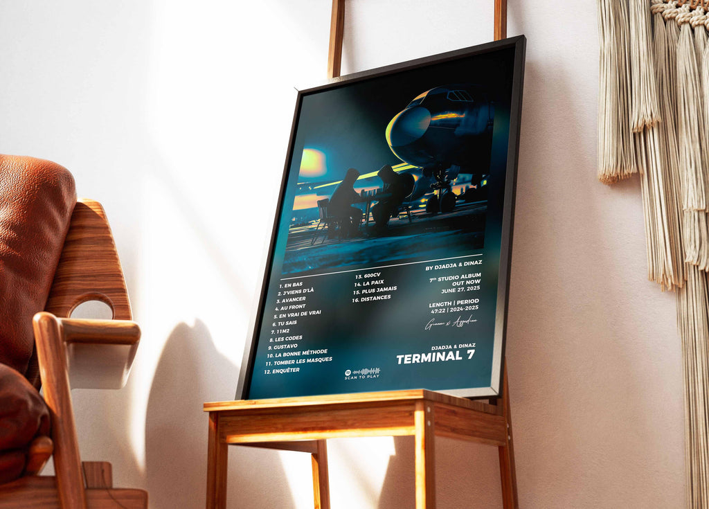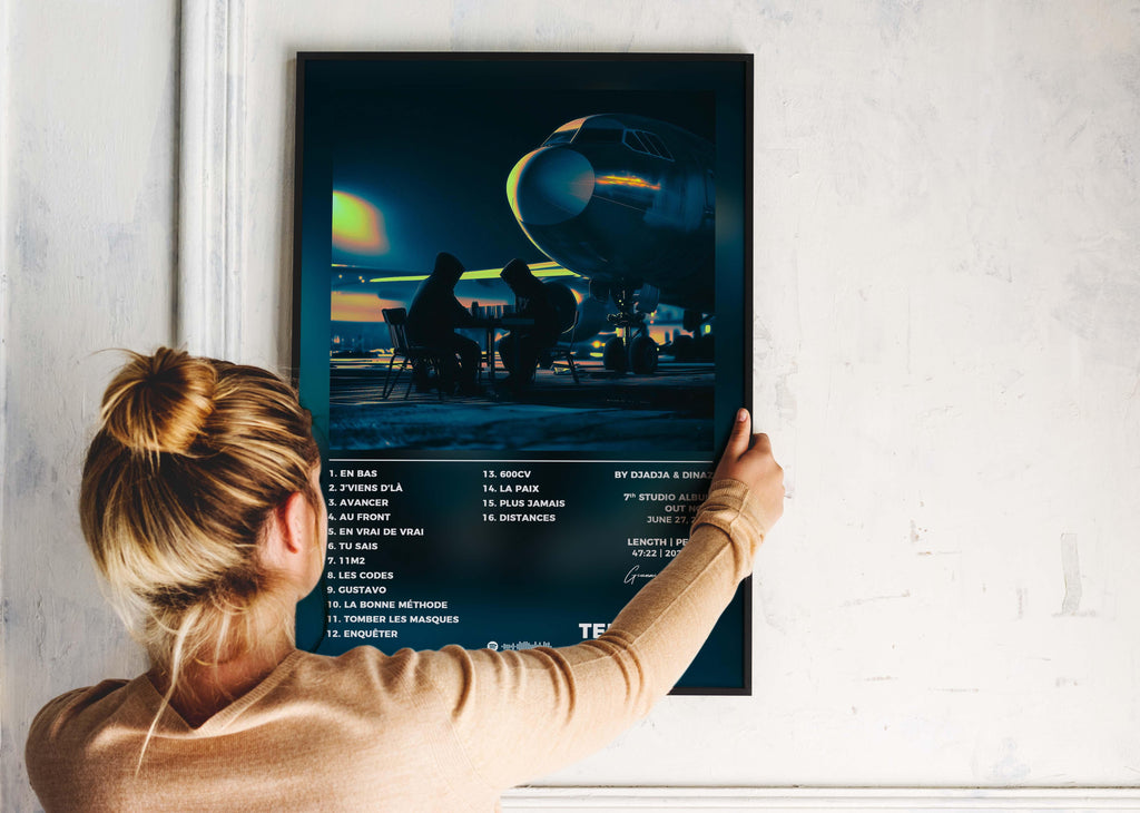 Scanne simplement le code sur le poster avec ton app de streaming pour que la musique prenne vie dans ton espace intérieur. Chaque poster devient une œuvre d'art et une passerelle vers tes albums préférés.