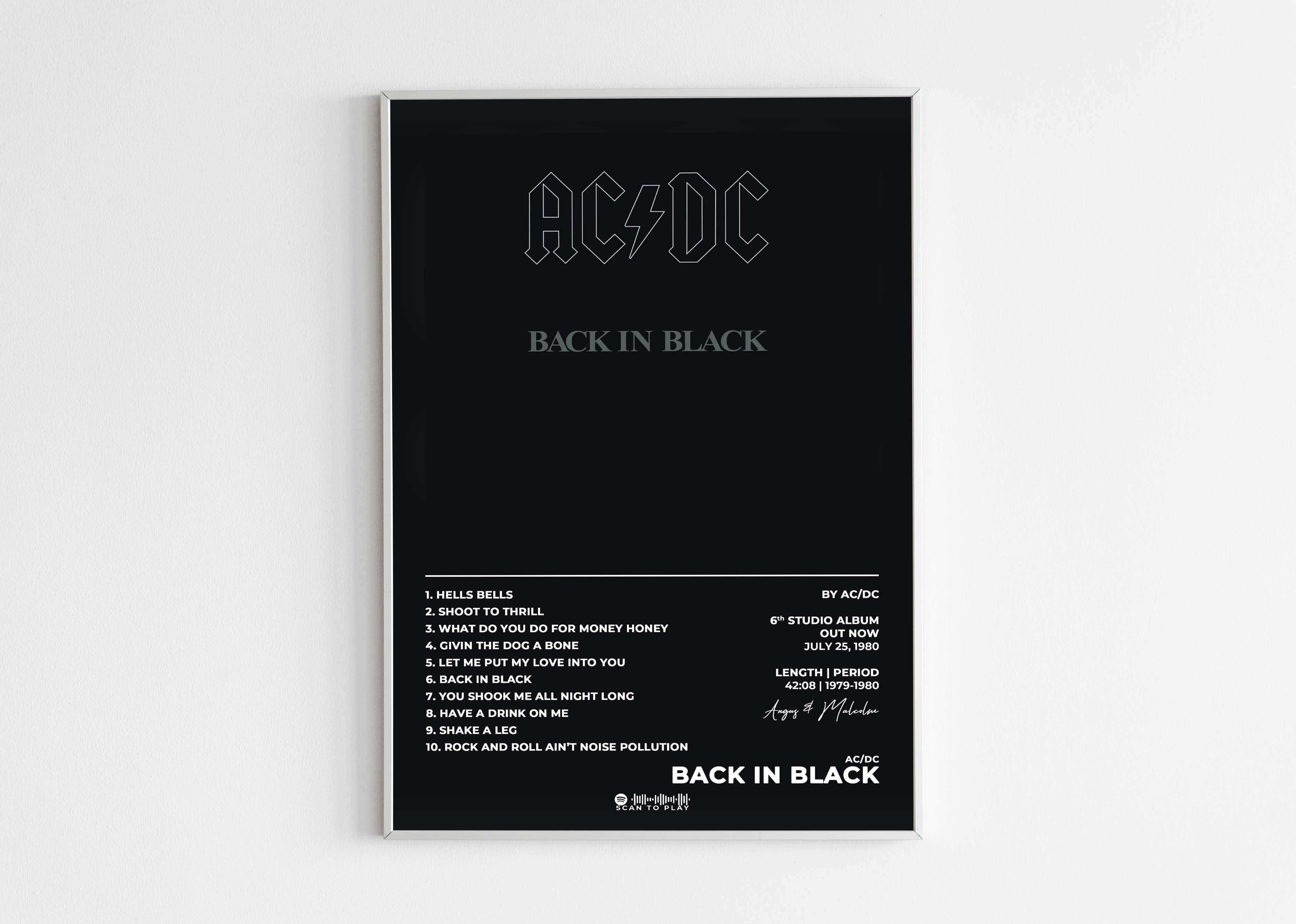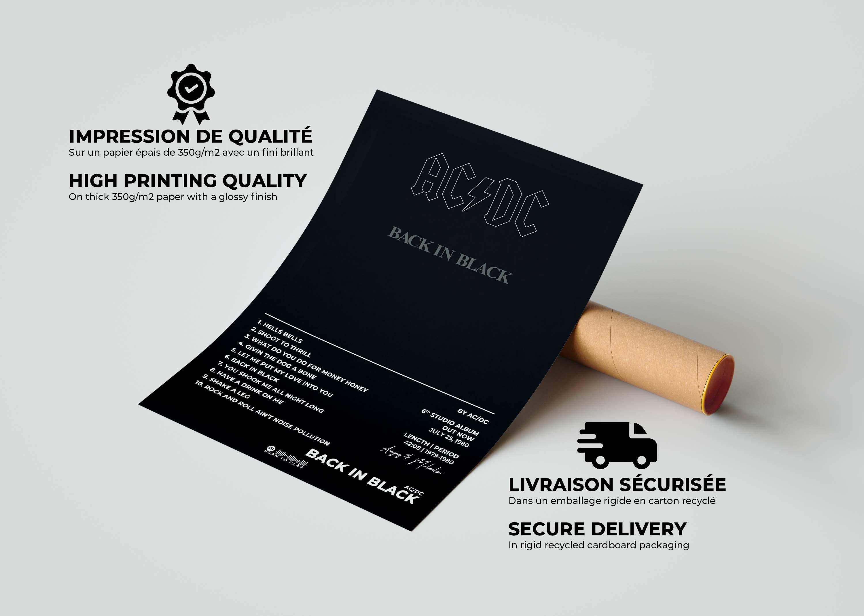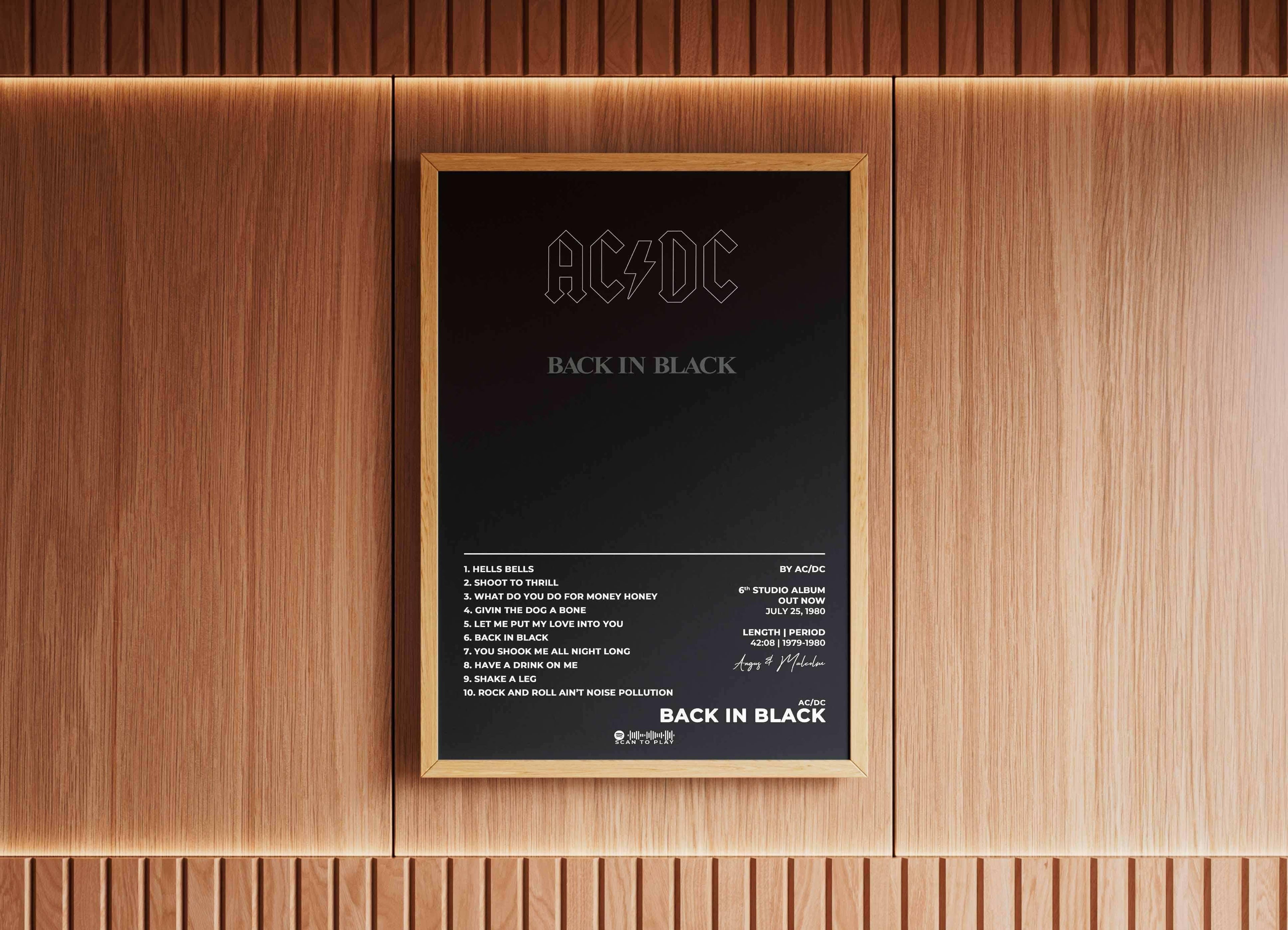 Affiche AC/DC Back in Black encadrée, fait en France, livraison gratuite 48h, cadeau idéal Noël