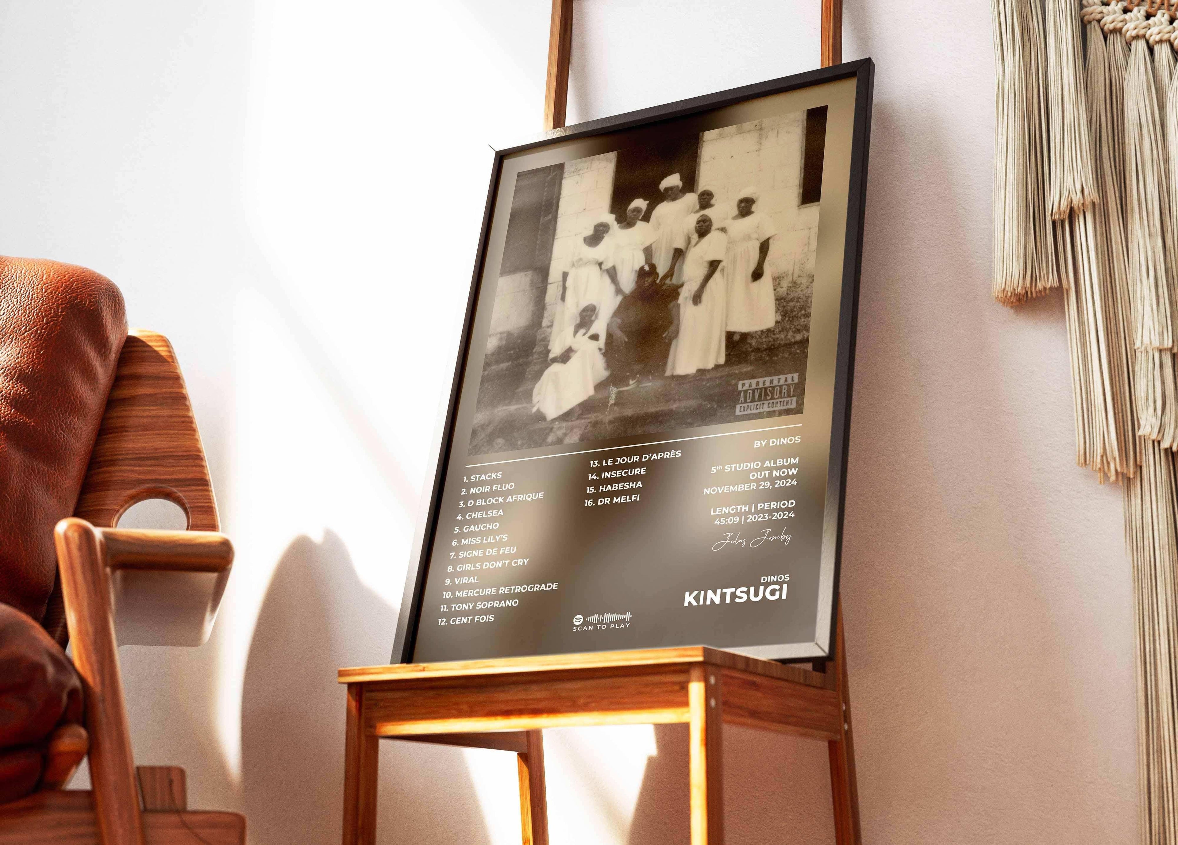 Scanne simplement le code sur le poster avec ton app de streaming pour que la musique prenne vie dans ton espace intérieur. Chaque poster devient une œuvre d'art et une passerelle vers tes albums préférés.