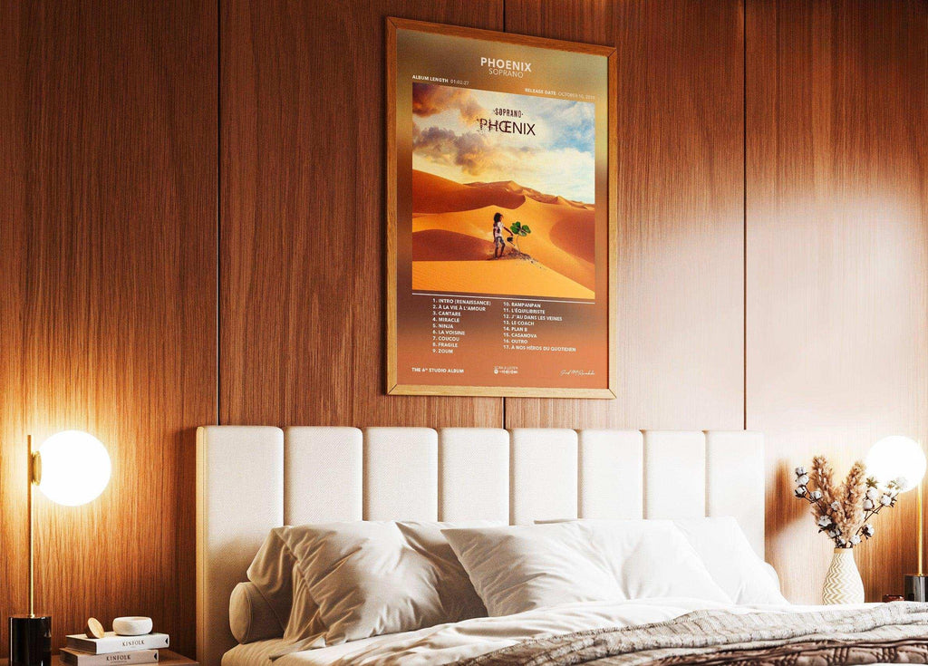 Scanne simplement le code sur le poster avec ton app de streaming pour que la musique prenne vie dans ton espace intérieur. Chaque poster devient une œuvre d'art et une passerelle vers tes albums préférés.