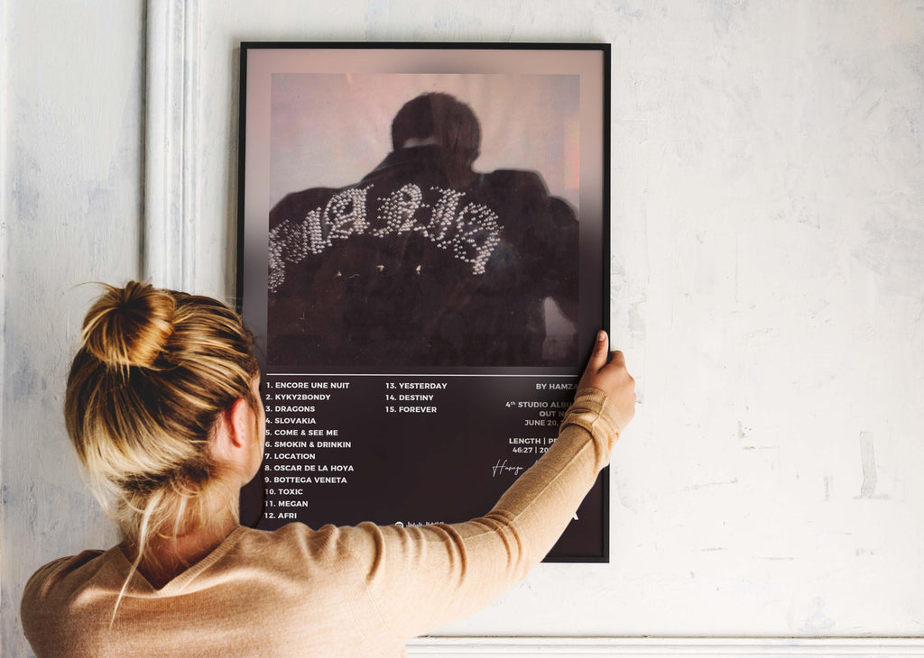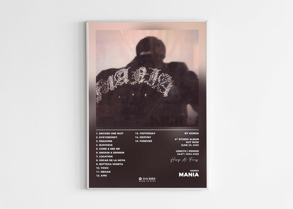 Scanne simplement le code sur le poster avec ton app de streaming pour que la musique prenne vie dans ton espace intérieur. Chaque poster devient une œuvre d'art et une passerelle vers tes albums préférés.